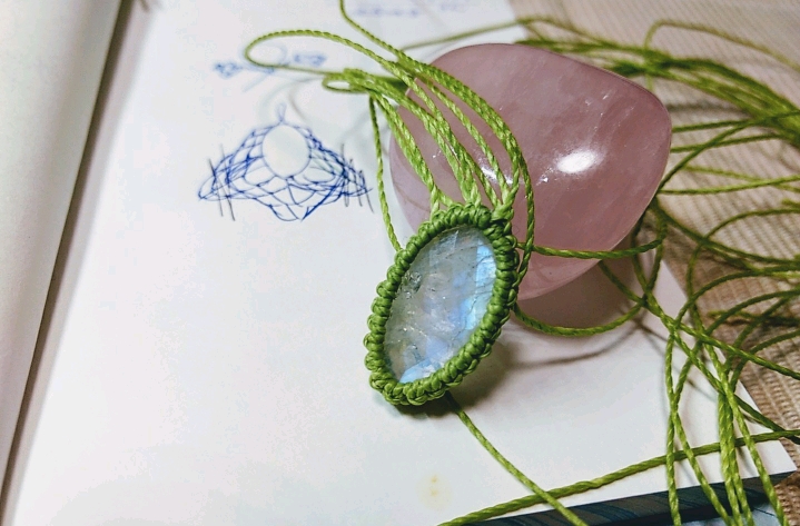 淡くも綺麗に光るムーンストーン、一部クラックが入ってることもあってそこが虹色に光ったりもしてなかなか素敵です。