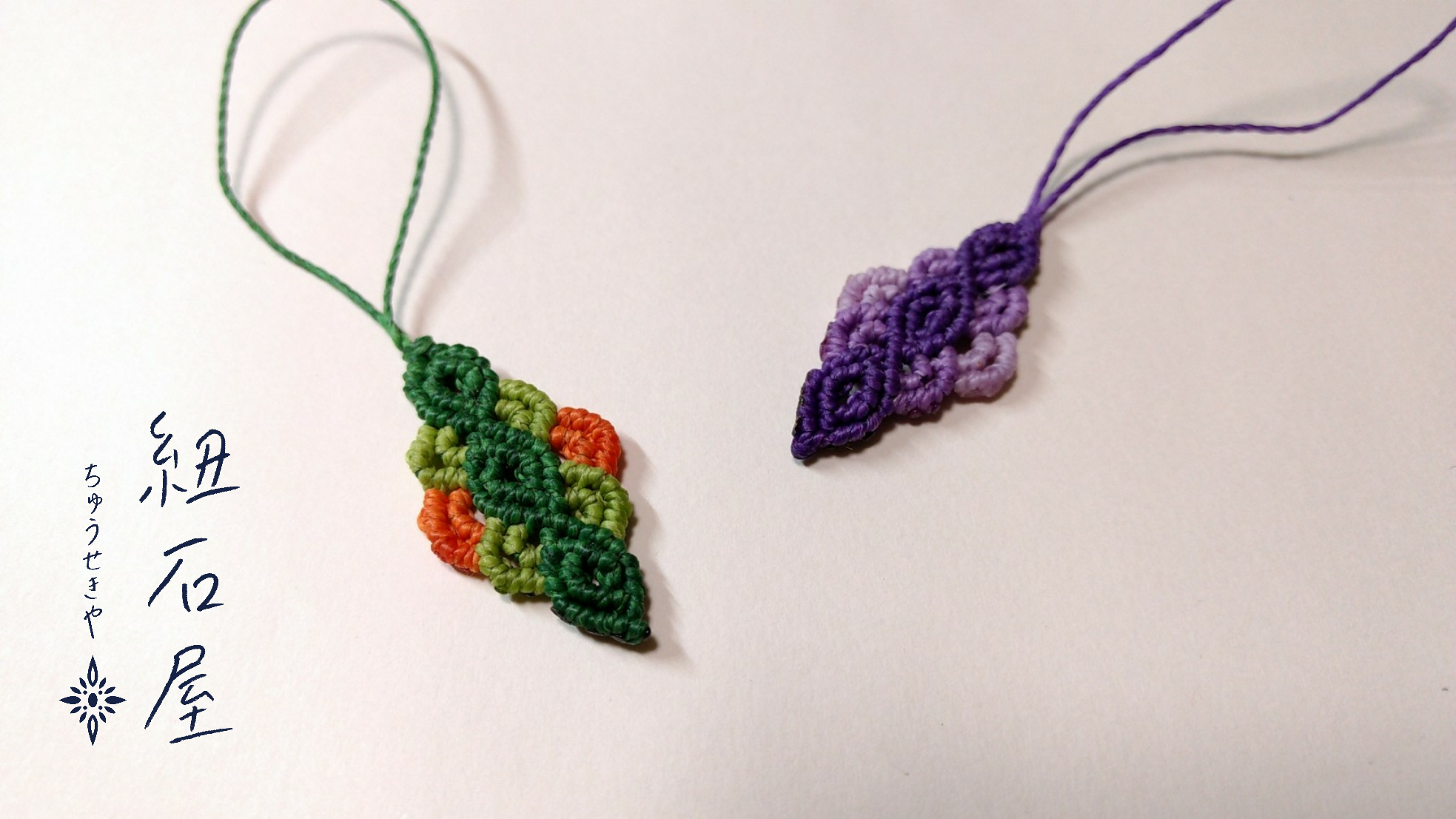 ちなみにこの根付のパターン、一昨年くらいに流行ってたもので、最近はぱったりと見なくなったものです。マクラメにも流行り廃りがあるんですね〜